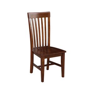 The Tall Mission Side Chair is a beautiful dining chair with an extra tall back. The back has vertical slats and a comfortable shape. The wood seats shaped for comfort.